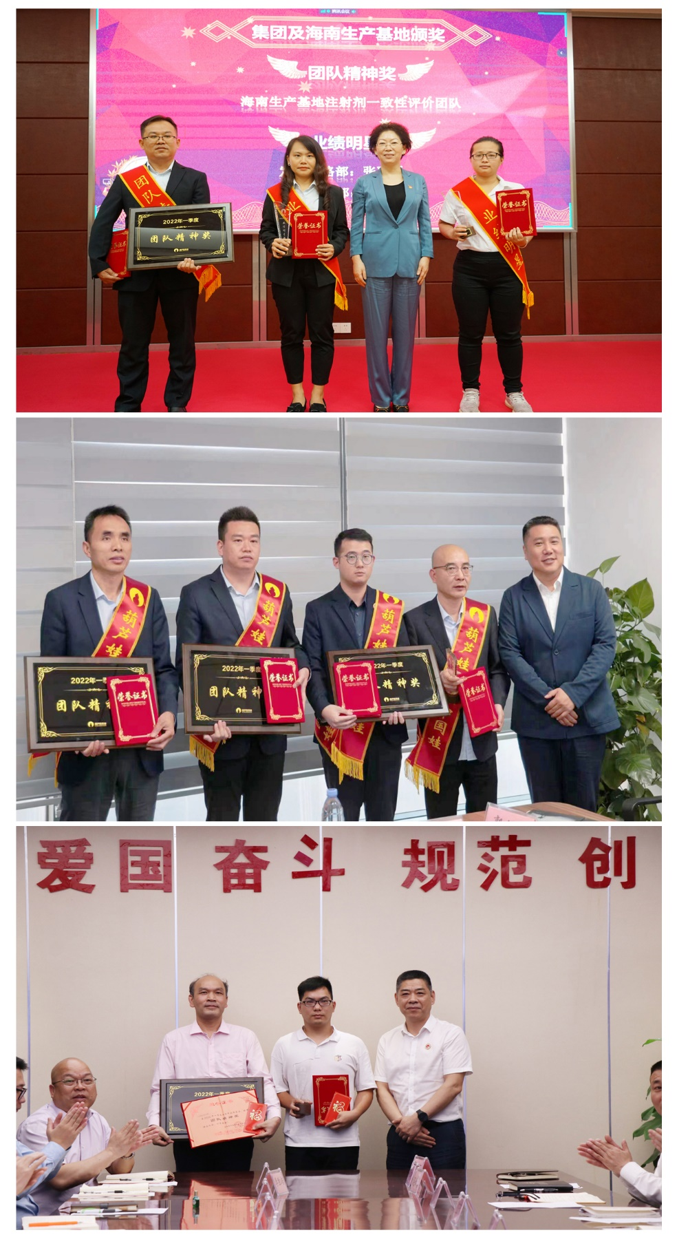 为了表彰在2022年一季度“深化变革,赢得开门红”工作中“超额完成计划、超出本职工作或超越组织预期”的先进集体和优秀个人,会议期间还举行了新宝GG药业集团2022年一季度“开门红”表彰颁奖仪式。营销中心葫芦世家事业部湖南区域主管黄子杰等12人荣获业绩明星奖,葫芦世家事业部等5个集体荣获团队精神奖。