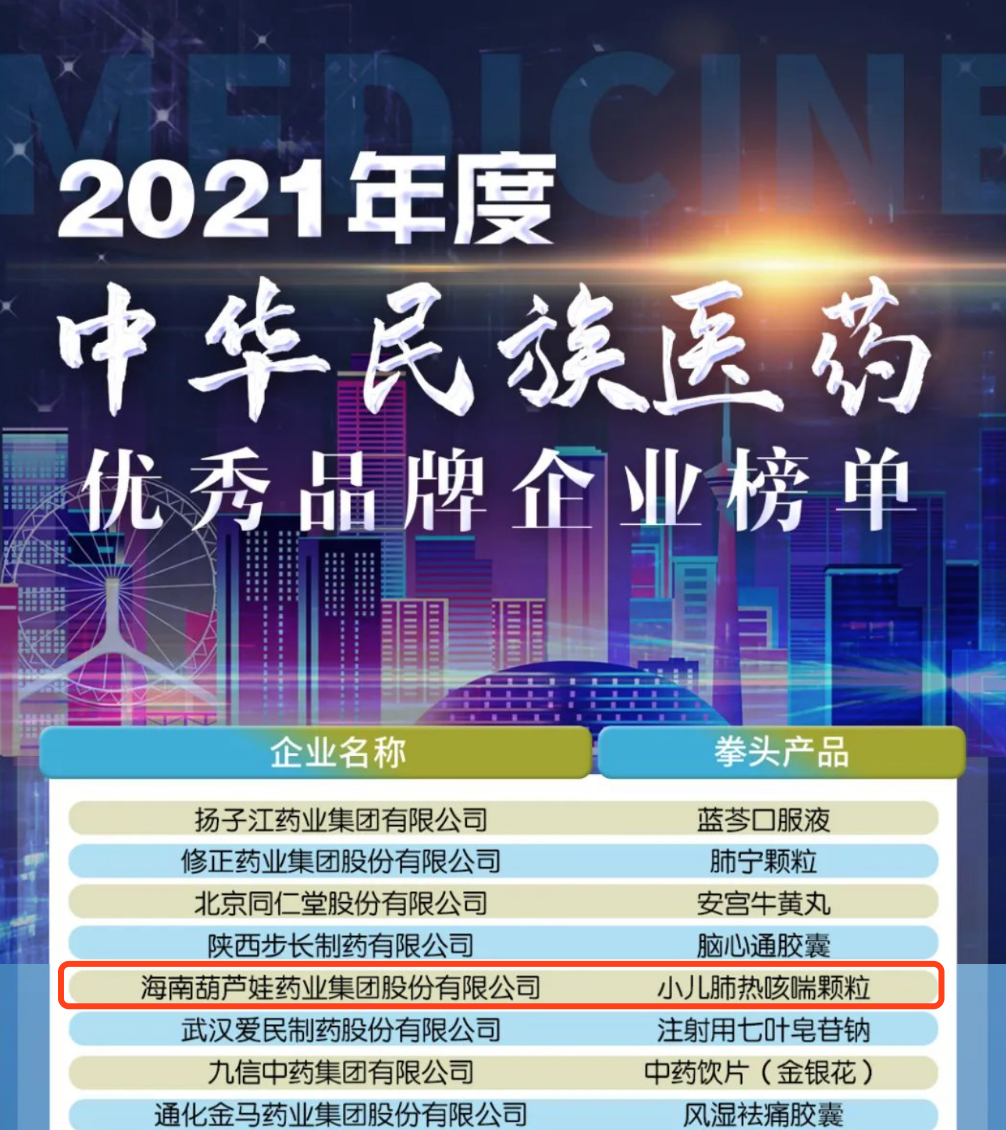 12月29日,全国工商联医药业商会发布了“2021年度中华民族医药优秀品牌企业榜单”,新宝GG药业集团凭借黄金单品小儿肺热咳喘颗粒(4克)实力登榜。