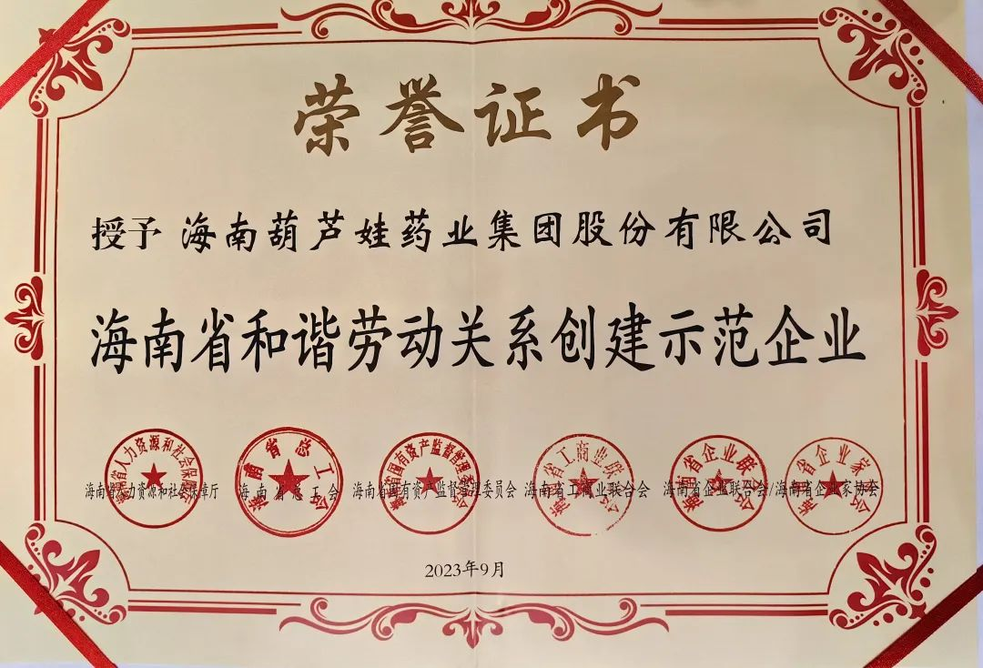 新宝GG药业集团获评“海南省和谐劳动关系创建示范企业”